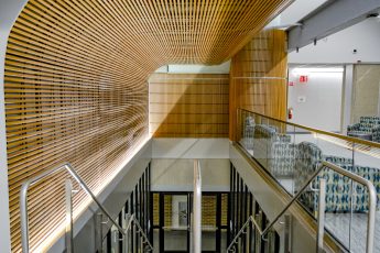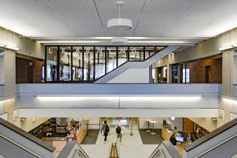 The project aimed to convert the third floor into a dynamic space hosting an Academic Advisement and Information Center, Tutoring and Writing Centers, a Reading Room and a Distance Learning Center. Enhancing ease of circulation, a new staircase was introduced to seamlessly connect the second and third floors, culminating in an open Student Lounge at the top, designed to foster community and engagement.