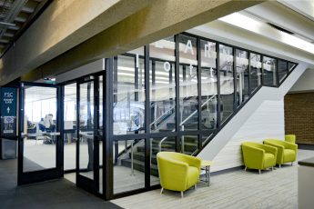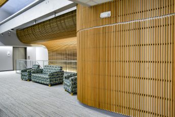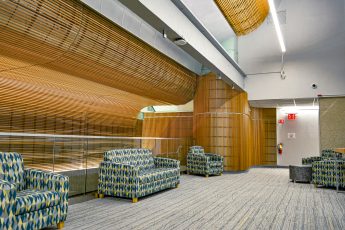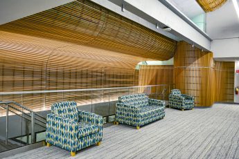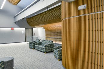 As a component Farmingdale State College’s campus revitalization, several renovations were undertaken to repurpose underutilized spaces, starting with the third floor of Greenley Library. Initially designed for radio and television studios, this area had gradually evolved into ad hoc storage, denying students access to an asset in campus’s heart. Recognizing its potential, the focus shifted towards transforming the third floor into a vibrant hub of student services.