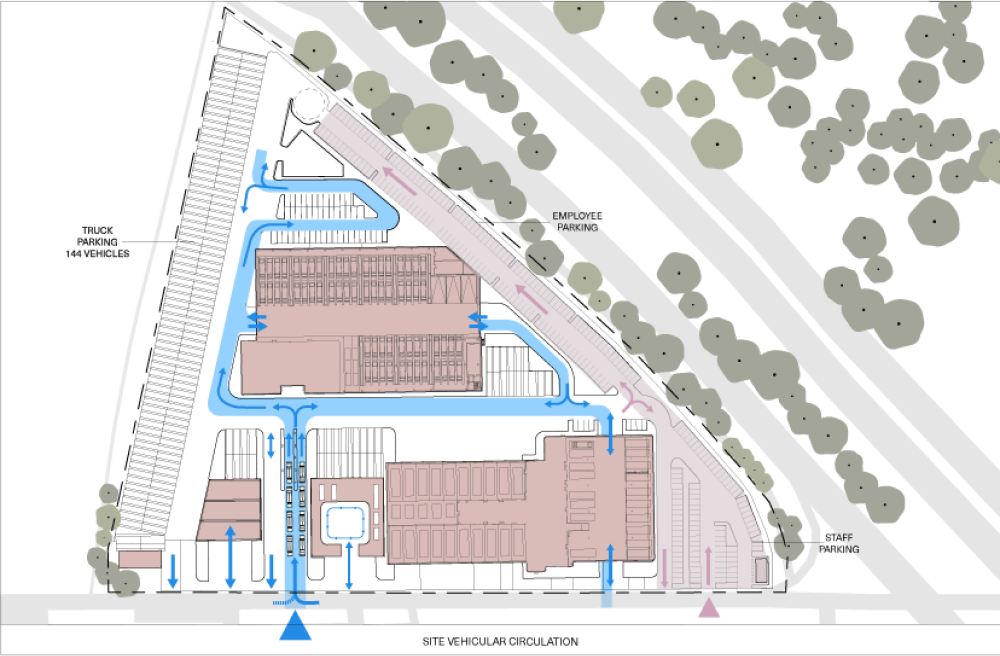 The design strategy emerged from extensive analysis of operational patterns, union requirements, and environmental considerations. Rather than a single massive intervention, the solution unfolds as a carefully orchestrated sequence: First expanding the borough repair garage, then introducing a new shared storage facility, followed by structured employee parking and comprehensive site improvements.